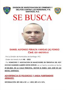 El detenido es Daniel Alfonso Peralta Vargas (a) “Fonso” bajo la orden de arresto No. 00091-2024, por ser uno de los presuntos implicados en la muerte a tiros de Daneuris Alberto Reyes Estévez, de 24 años, y de herir a Javier Antonio Tavares Estevez, de 56.