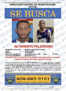 Santiago de los Caballeros,– La Policía Nacional de la República Dominicana informó que mantiene activa la búsqueda de dos hombres señalados como presuntos responsables de hechos de homicidio ocurridos en distintos sectores de esta ciudad, a quienes exhortó a entregarse por la vía que consideren pertinente.