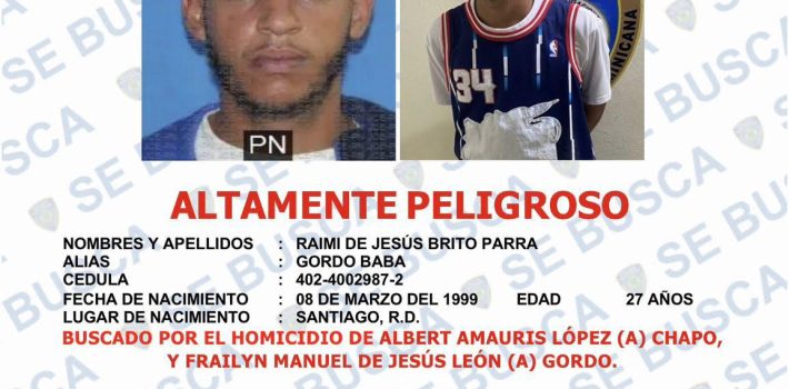 El segundo buscado es Raimi de Jesús Brito Parra, alias “Gordo Baba”, de 27 años, requerido mediante la orden de arresto No. 2026-AJ0031524.