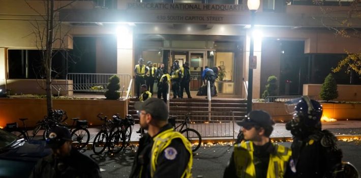 WASHINGTON, (VOA),- Agentes de la policía del Capitolio de Estados Unidos con equipos antidisturbios se enfrentaron con decenas de manifestantes que se reunieron frente a la sede del Comité Nacional Demócrata (DNC) en Washington el miércoles por la noche para exigir un alto el fuego en Gaza.