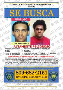 Los prófugos fueron identificados como Saúl Hernández (a) “Wily”, de 28 años, y Wedelyn Orlando Reyes Rodríguez (a) “Wesllin”, también de 28, ambos oriundos de Santiago de los Caballeros, quienes están siendo activamente buscados por su presunta participación en el hecho criminal.