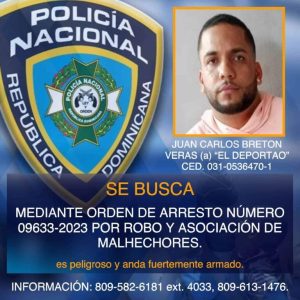 El señalado es Juan Carlos Bretón Veras, alias “el Deportado”, contra quien pesa una orden de arresto y quien figura entre los 10 delincuentes más buscados por la Policía Nacional en Santiago.