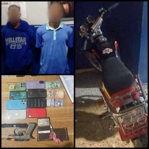 Los detenidos, identificados como Radeli Mora Colón y Rafi Daniel Martínez, son señalados como presuntos responsables de varios atracos ocurridos en la zona. Ambos se desplazaban en una motocicleta marca Gato, color negro, que no contaba con documentación.