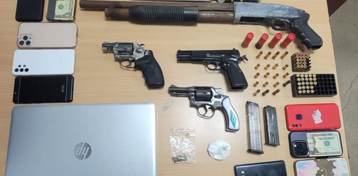 En las intervenciones resultaron detenidas tres personas, ocupan cinco armas de fuego y drogas.