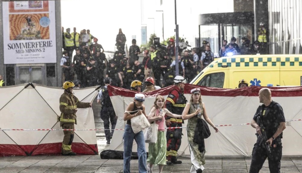 En las imágenes del lugar donde ocurrió la balacera se veía a la gente corriendo afuera del centro comercial, y TV2 publicó una foto de un hombre que era colocado en una camilla. Después del tiroteo, un enorme contingente de policías fuertemente armados patrulló la zona, y en el estacionamiento también había varios vehículos de los bomberos.