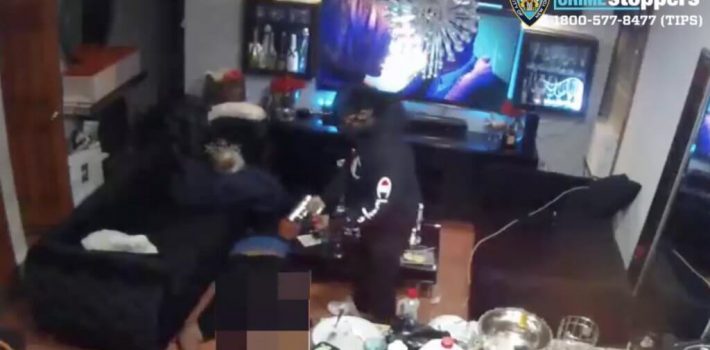 La uniformada despachó un video y fotos donde se observa a los malhechores, con pistolas en manos, ordenando a una víctima masculina que se acostara boca abajo en el piso de la sala y colocara sus manos detrás de su espalda.