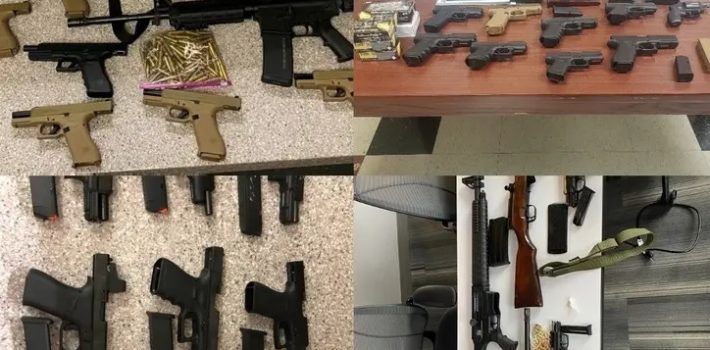 Luego, las autoridades confiscaron 25 armas (fusiles, pistolas, escopetas y revólveres) durante una investigación de meses sobre el presunto traficante de armas de fuego desde Georgia.