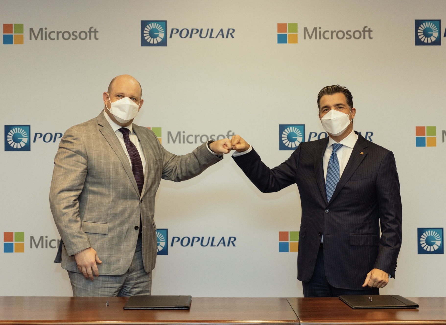 El acuerdo fue firmado en la Torre Popular, sede de la entidad bancaria, en un acto encabezado por los señores Christopher Paniagua, presidente ejecutivo del Popular, y Herbert Lewy, gerente general de Microsoft y responsable de la Transformación Digital para el Caribe.