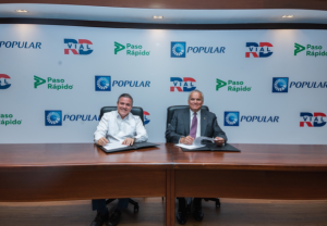 Santo Domingo, D.N. – El Banco Popular Dominicano y el fideicomiso público RD Vial suscribieron un acuerdo para ofrecer a los clientes de la entidad bancaria la posibilidad de recargar el servicio de “Paso Rápido” a través de sus canales digitales, Internet Banking y App Popular, así como en las áreas de caja de sus sucursales a nivel nacional, lo cual agrega valor a los clientes de la organización financiera, que podrán viajar de forma más ágil y eficiente por la principal red de carreteras dominicanas con estaciones de peaje.