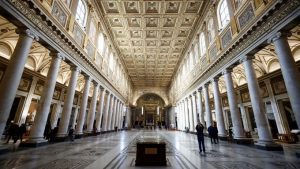 Construida en el siglo V, esta basílica es famosa por sus mosaicos paleocristianos y techos cubiertos en madera dorada. Su historia está vinculada a un milagro mariano, conmemorando cada año el «Milagro de la nieve», ocurrido en pleno verano del año 358.