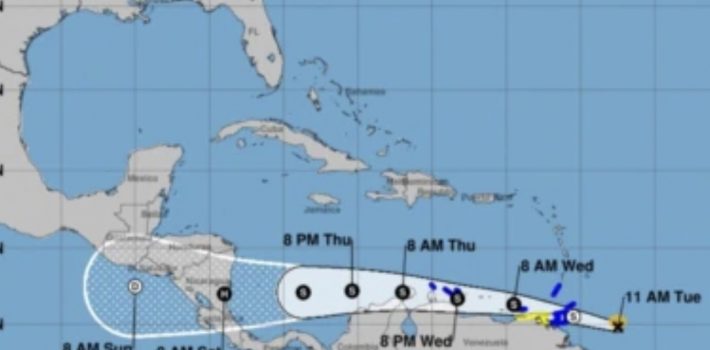 El gobierno de Venezuela emitió una alerta de tormenta tropical para las islas de Margarita, Coche y Cubagua. El sistema podría convertirse en huracán antes de tocar tierra en Nicaragua esta semana.