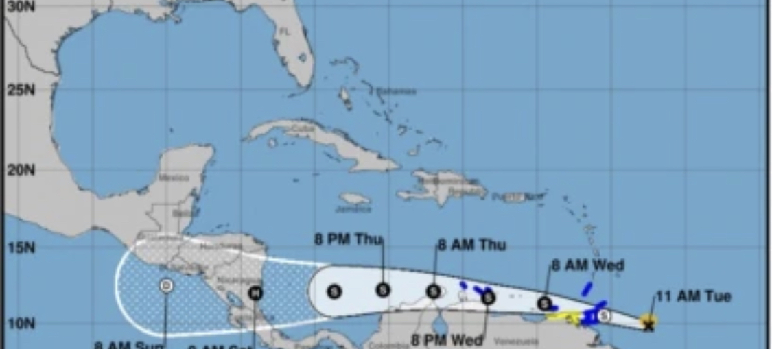 Según el Centro Nacional de Huracanes de Estados Unidos, en Miami, el sistema se encontraba en la mañana de este martes a 420 kilómetros al este de Trinidad, con vientos máximos sostenidos de 65 kilómetros por hora, y se movía hacia el oeste a una velocidad de traslación de 37 kilómetros por hora.