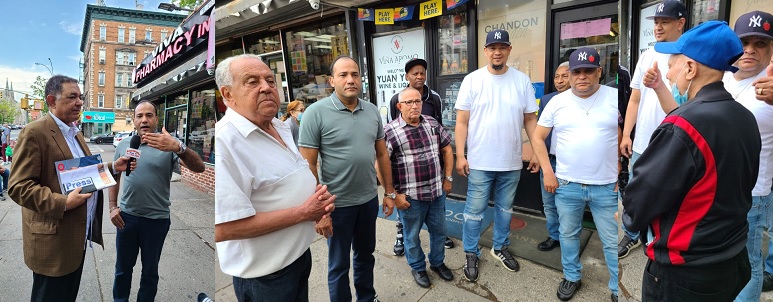 NUEVA YORK.- Decenas de dominicanos que transitaban por la avenida Saint Nicholas con la calle 185, en el Alto Manhattan, abordaron al precandidato a senador por la provincia de Dajabón, Salvador Holguín, cuando salía de un restaurant de la zona y le preguntaron sobre sus propósitos con la comunidad quisqueyana en el exterior en caso de ser elegido.