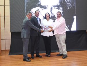 El acto estuvo encabezado por Julio César Valentín Jiminián, superintendente de Seguros, acompañado de Minou Tavárez Mirabal, figura política y representante de la descendencia de las hermanas Mirabal, junto a Celeste Mir, hija del laureado poeta.