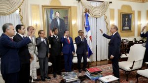 Durante la juramentación, el presidente de la República estuvo acompañado del ministro Administrativo de la Presidencia, José Ramón Peralta, y del consultor jurídico del Poder Ejecutivo, Flavio Darío Espinal.