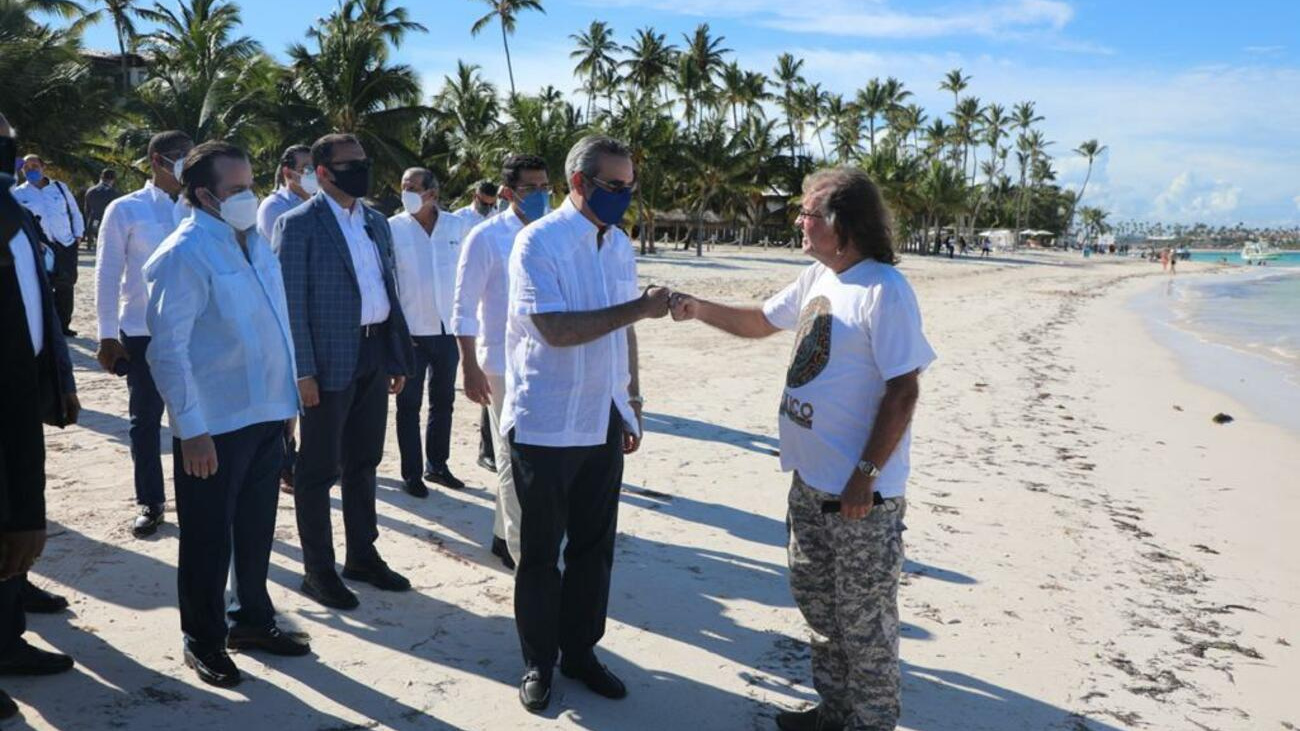 PUNTA CANA. – El presidente Luis Abinader visitó la playa Bávaro, una de las principales de la zona este del país, donde constató la situación del sargazo en la costa.