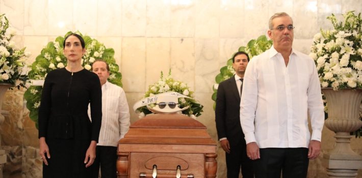 El presidente Abinader rindió guardia de honor ante el ataúd de este ícono de la cultura dominicana, junto con la primera dama, Raquel Arbaje, y los ministros de Cultura, Roberto Ángel Salcedo, y de la Presidencia, José Ignacio Paliza.