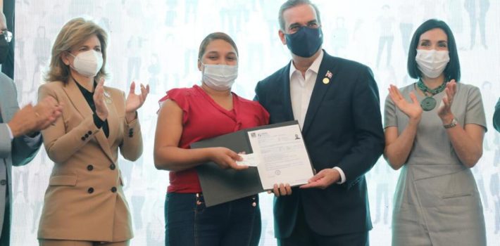 SANTO DOMINGO. – El presidente Luis Abinader y el director del Seguro Nacional de Salud (SENASA) entregaron este lunes la acreditación de afiliación al Régimen Subsidiado del Seguro Familiar de Salud a la señora Esmerlyn Francisca Corporán, con la que suman dos nuevos millones de beneficiados.