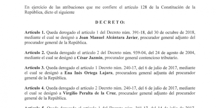 Quedó derigado el decreto que designaba a Andrés M. Chalas Velásquez, procurador general de Medio Ambiente, y el que designó a César Jazmín procurador contencioso tributario.