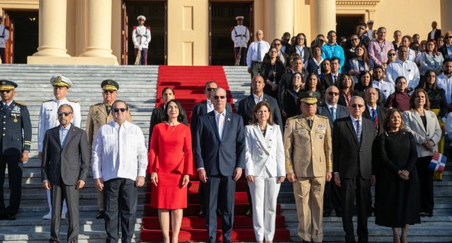 Santo Domingo. – El presidente Luis Abinader encabezó este lunes el acto solemne en conmemoración del Día de la Bandera Nacional, celebrado en las escalinatas del Palacio Nacional, reafirmando con su presencia el compromiso del Gobierno con la defensa de los símbolos patrios, la soberanía nacional y los valores fundacionales de la República Dominicana.