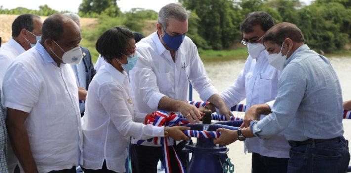 Montecristi.- El presidente Luis Abinader dejó en funcionamiento este domingo un dique y otras obras de riego en la localidad de Palo Verde, con una inversión de 84,448,935 pesos.