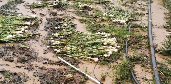 Las intensas lluvias, acompañadas de fuertes vientos, desbordamientos de ríos y arroyos, afectaron la agricultura en diferentes rubros.