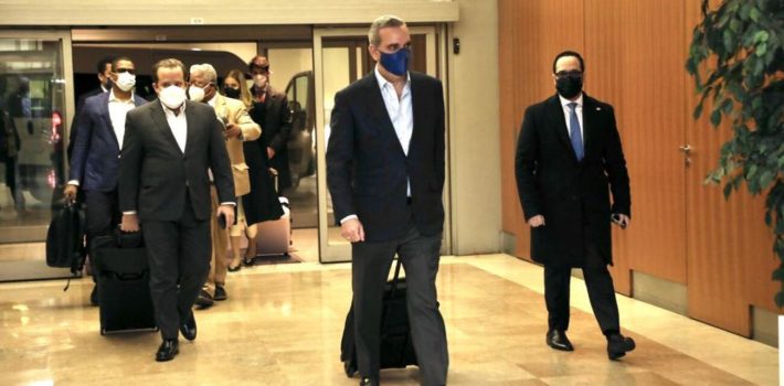 Acompañan al gobernante el ministro administrativo de la Presidencia, José Ignacio Paliza, y el de Turismo, David Collado. También, Eilyn Beltrán, asistente especial y secretario del gabinete del presidente; Mercedes Pichardo, su asistente personal, y el mayor general Celín Rubio, jefe del Cuerpo de Seguridad Presidencial.