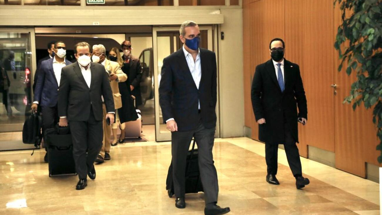 Acompañan al gobernante el ministro administrativo de la Presidencia, José Ignacio Paliza, y el de Turismo, David Collado. También, Eilyn Beltrán, asistente especial y secretario del gabinete del presidente; Mercedes Pichardo, su asistente personal, y el mayor general Celín Rubio, jefe del Cuerpo de Seguridad Presidencial.