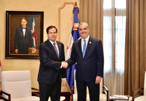 Santo Domingo .- El presidente Luis Abinader recibió este jueves en su Despacho del Palacio Nacional, sede del Gobierno de la República Dominicana, al secretario de Estado de los Estados Unidos, Marco Rubio.