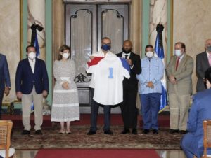 SANTO DOMINGO.- El Presidente Luis Abinader y la vicepresidenta Raquel Peña recibieron en el Salón de Embajadores del Palacio Nacional al equipo nacional de béisbol que participará en los Juegos Olímpicos de Tokio 2020.