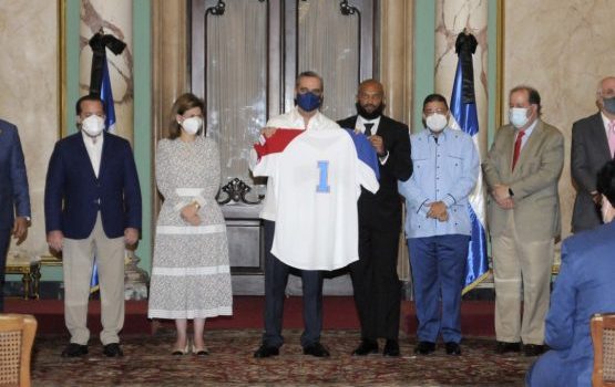 SANTO DOMINGO.- El Presidente Luis Abinader y la vicepresidenta Raquel Peña recibieron en el Salón de Embajadores del Palacio Nacional al equipo nacional de béisbol que participará en los Juegos Olímpicos de Tokio 2020.