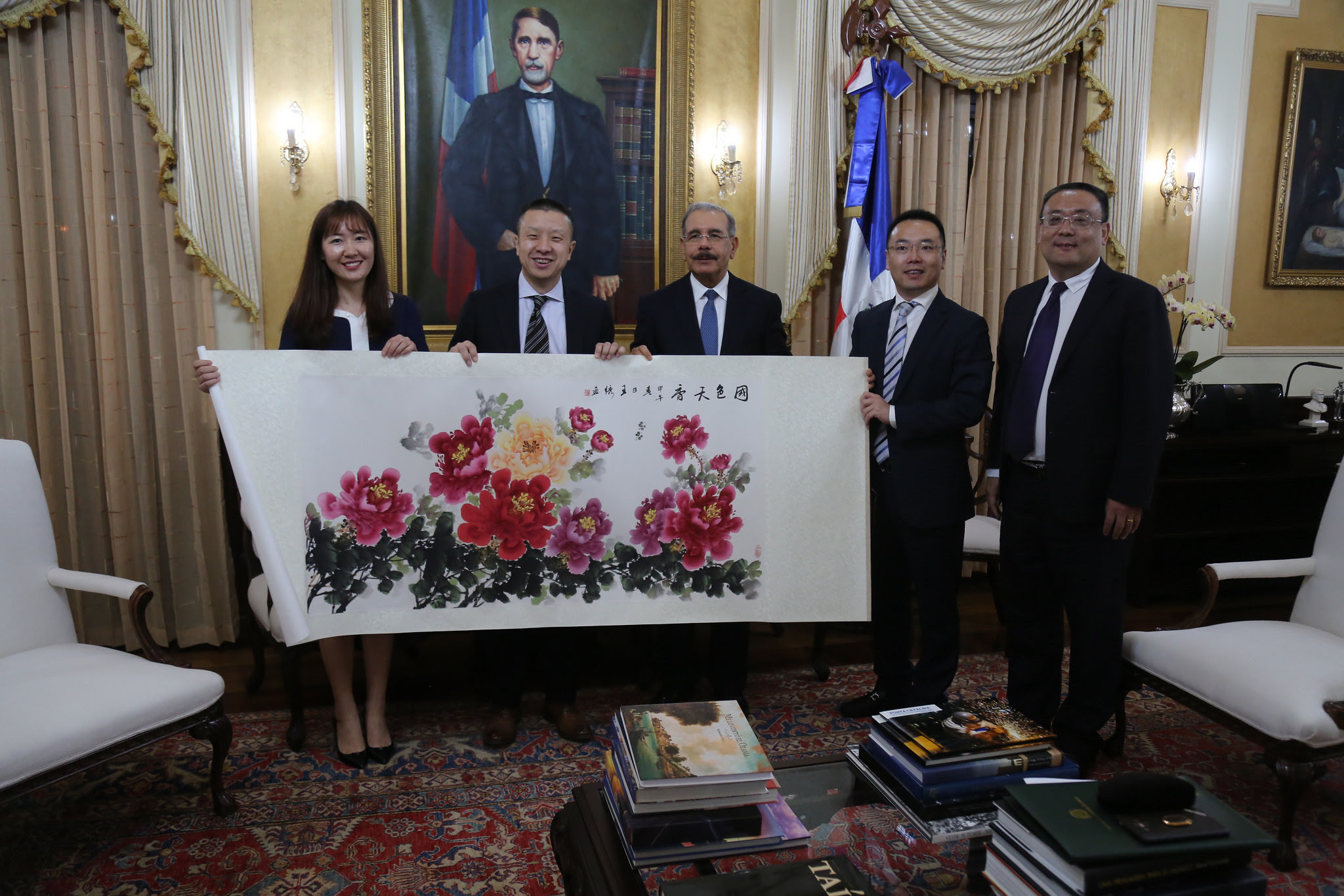 El presidente Danilo Medina recibió en su despacho del Palacio Nacional, a varios ejecutivos de la empresa Huawei Technologies Co., LTd, para conversar sobre diversos asuntos de interés común.