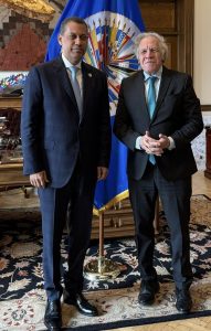 Washington D. C., EE.UU. – En el marco su agenda de trabajo por los Estados Unidos, el presidente del Consejo Directivo del Instituto Dominicano de las Telecomunicaciones (INDOTEL), Guido Gómez Mazara, sostuvo un encuentro con el secretario general de la Organización de Estados Americanos (OEA), Luis Almagro, quien mostró interés de colaborar con República Dominicana para reducir la brecha digital.