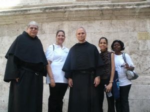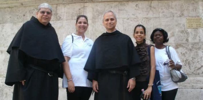 Monseñor Rodríguez compartió con el periódico elCaribe una fotografía tomada en el Santo Cerro, donde aparece el hoy papa León XIV con el valle de La Vega Real de fondo. Otra imagen, capturada en 2004, lo muestra junto a la doctora Karla Dalmasi, reconocida odontóloga y docente de la PUCMM, durante una jornada pastoral.