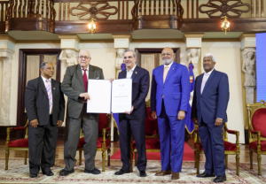 El presidente Luis Abinader y el ministro de Educación, Roberto Fulcar, junto al presidente del Colegio Dominicano de Periodistas (CDP), Aurelio Henríquez, entregaron este jueves el Premio Nacional de Periodismo 2022 a Bonaparte Gautreaux Piñeyro, en reconocimiento a su intachable trayectoria de más de 60 años en el ejercicio del periodismo y defensa de la democracia dominicana.