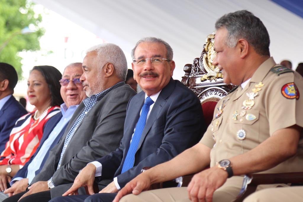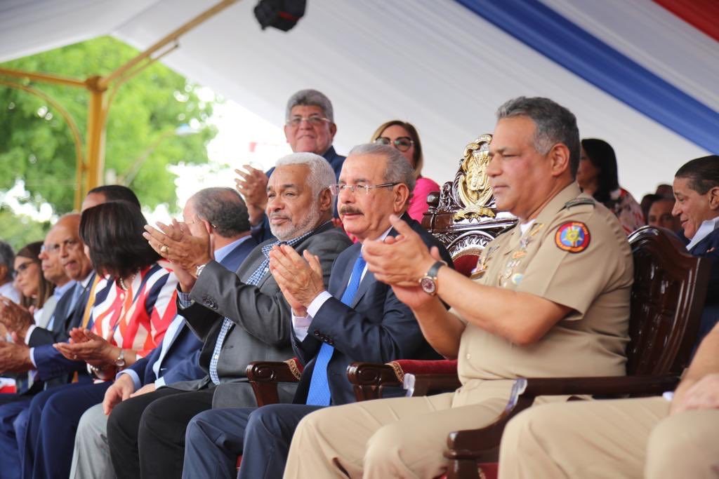 En el palco presidencial, Danilo Medina estuvo acompañado del presidente de la Cámara de Diputados, Radhamés Camacho; así como de los ministros de Defensa, teniente general Rubén Darío Paulino Sem; de Interior y Policía, José Ramón Fadul; de Trabajo, Winston Santos; y de Administración Pública, Ramón Ventura Camejo.