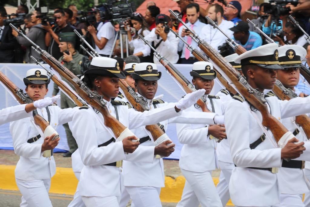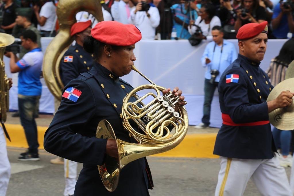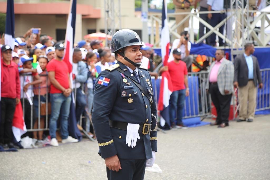 La actividad, celebrada en la avenida Las Carreras, inició justo a las 3:57 de la tarde con la llegada del presidente Danilo Medina, a quien le fueron rendidos los honores de estilo propios de su investidura: cinco floreos, una salva de 21 cañonazos y la interpretación del Himno Nacional.