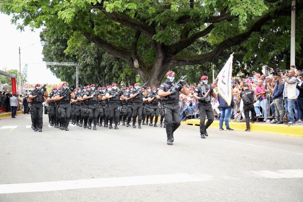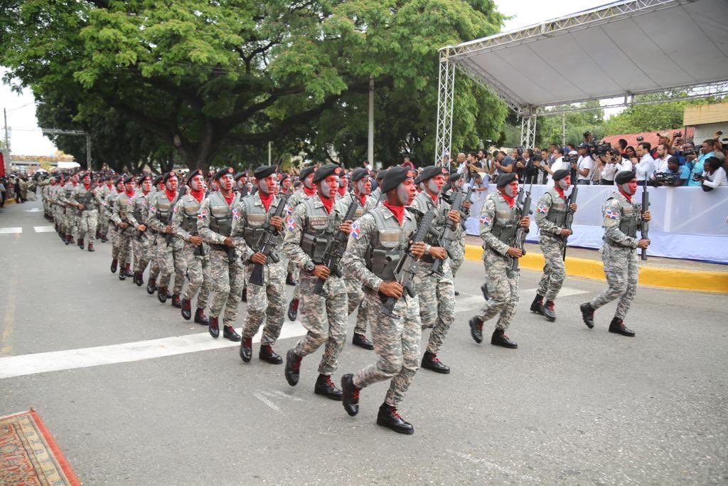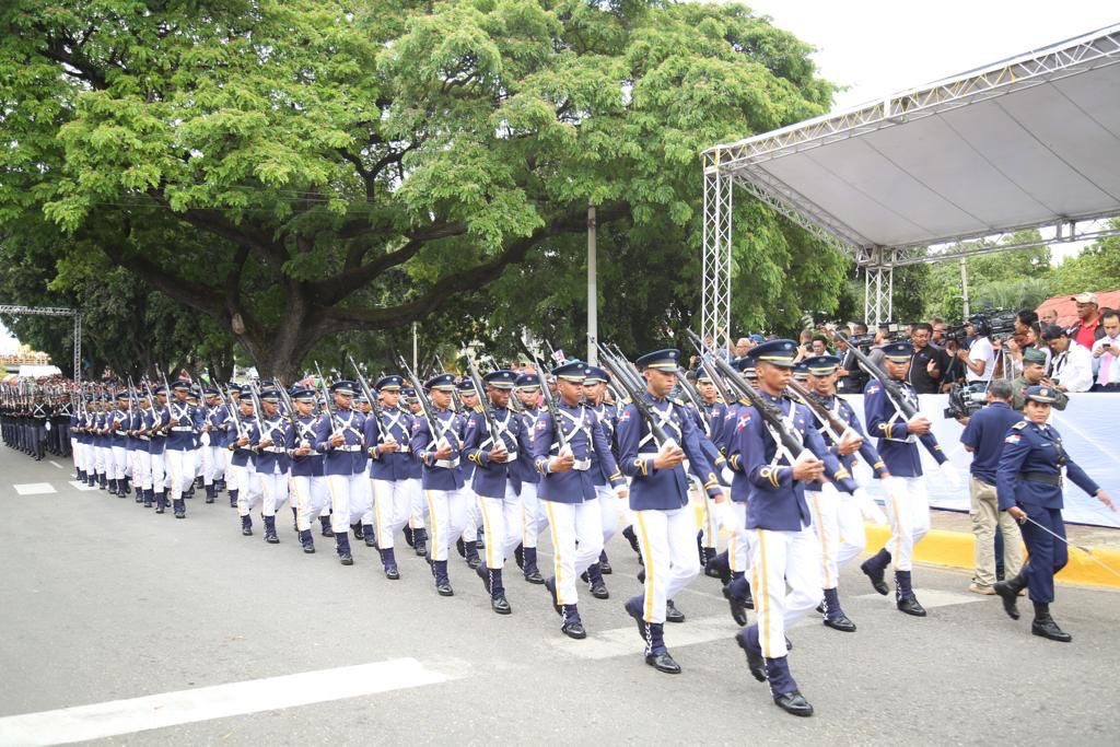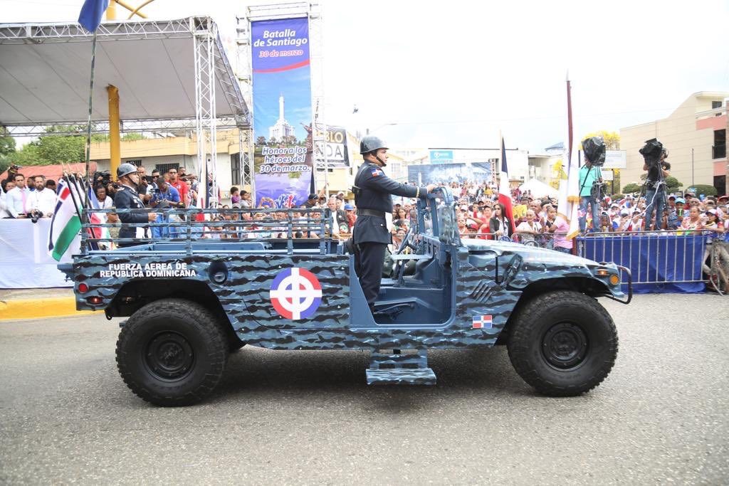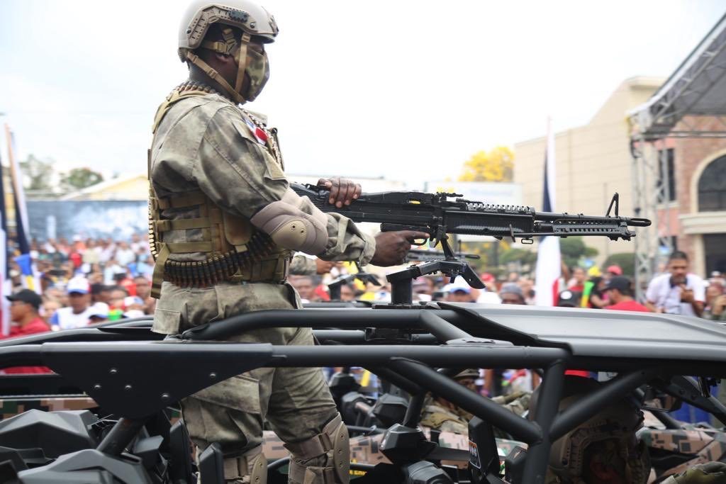 El jefe de Estado presenció el amplio despliegue de nuestras tropas, que a paso firme y en vehículos militares mostraron las maniobras, armamentos y equipos militares con los cuales protegen la soberanía nacional y el pueblo dominicano.