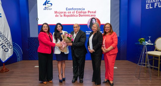 Santo Domingo. -En el marco del 45 aniversario del Instituto Nacional de Formación Técnico Profesional (INFOTEP), la Procuradora General de la República, Yeni Berenice Reynoso, ofreció una conferencia bajo el título “Mejoras en el Código Penal de la República Dominicana” ante colaboradores e invitados institucionales.