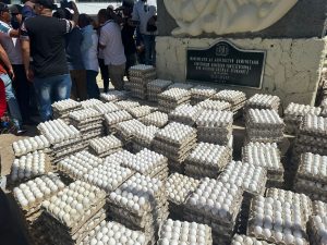 Productores de Moca distribuyen huevos gratis en manifestación