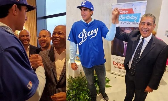 NUEVA YORK.- El alcalde de esta ciudad, Eric Adams, y el congresista (D-13) Adriano Espaillat se sumaron a la alegría de la comunidad dominicana en la Gran Manzana por el equipo de «Los Tigres del Licey» escoger al prospecto dominico-americano, Adrián Rodríguez, para jugar en la próxima temporada de béisbol en el país caribeño.