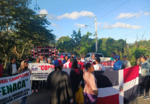 Los manifestantes corearon consignas como “El pueblo unido jamás será vencido” y “Fuera la Barrick Gold”, expresando su rechazo a las operaciones mineras en Cotuí.