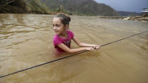 En el poblado de San Lorenzo, unos 65 kilómetros (40 millas) al oeste de San Juan, las personas atravesaban agua que les llegaba a las rodillas para obtener provisiones, debido a que el puente que cruza el río Manatí quedó destruido por la tormenta.
