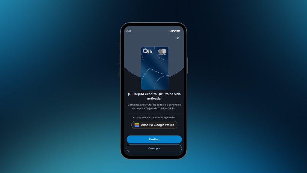 La activación de Qik Pro se realiza al solicitar y activar la tarjeta de crédito desde la aplicación móvil de Qik, permitiendo el acceso automático a la experiencia completa del ecosistema.