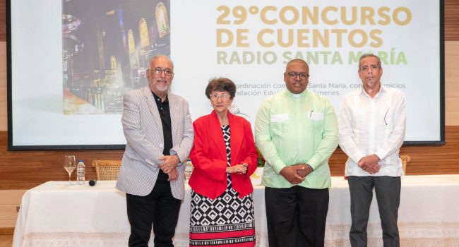Santiago, RD.– En un emotivo acto que reunió a destacadas figuras de la comunidad literaria dominicana, Radio Santa Maria anunció el lanzamiento de la 30ª edición del Concurso de Cuentos, iniciativa que organiza en coordinación con la Fundacion Eduardo Leon Jimenes.
