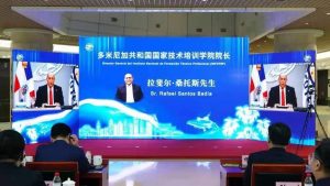 SANTO DOMINGO,- En una singular ceremonia conjunta y virtual celebrada entre autoridades de la República Dominicana y de la República Popular China, el Instituto Nacional de Formación Técnico Profesional (INFOTEP) y la Escuela Técnica Profesional de Nanjing Jinling suscribieron un acuerdo mediante el cual proyectan la construcción de una comunidad que han denominado «la Franja y la Ruta».