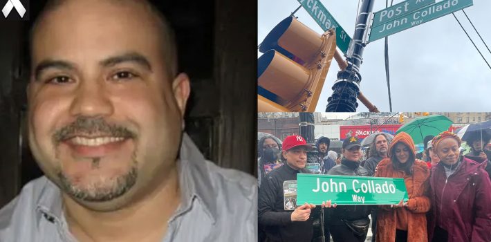 NUEVA YORK,-La esquina de la intersección de la calle Dickman y avenida Post en el sector Inwood del Alto Manhattan, fue bautizada el sábado en memoria del competidor de lucha libre profesional John Collado, nativo de Santiago de los Caballeros asesinado por el policía encubierto del cuartel 34 James Connolly el 6 de septiembre 2011, hace 12 años.
