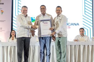 Santo Domingo. – En el marco de la celebración de la Cumbre Latinoamericana de Concejales, el presidente de la Liga Municipal Dominicana (LMD), Víctor D´Aza, recibió el reconocimiento a la Excelencia Municipal de parte de la Federación Latinoamericana de Ciudades, Municipios y Asociaciones de Gobiernos Locales (Flacma).