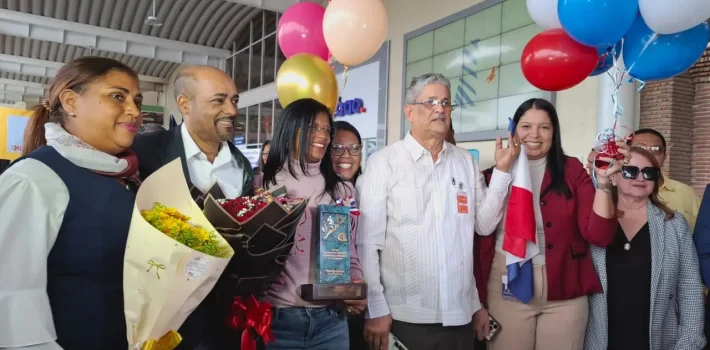 El recibimiento se realizó en el Aeropuerto Internacional del Cibao, donde maestros, estudiantes y autoridades educativas se congregaron para dar la bienvenida a la delegación del centro, en medio de banderas dominicanas y música típica, como expresión de orgullo por este importante logro para la educación de la región.