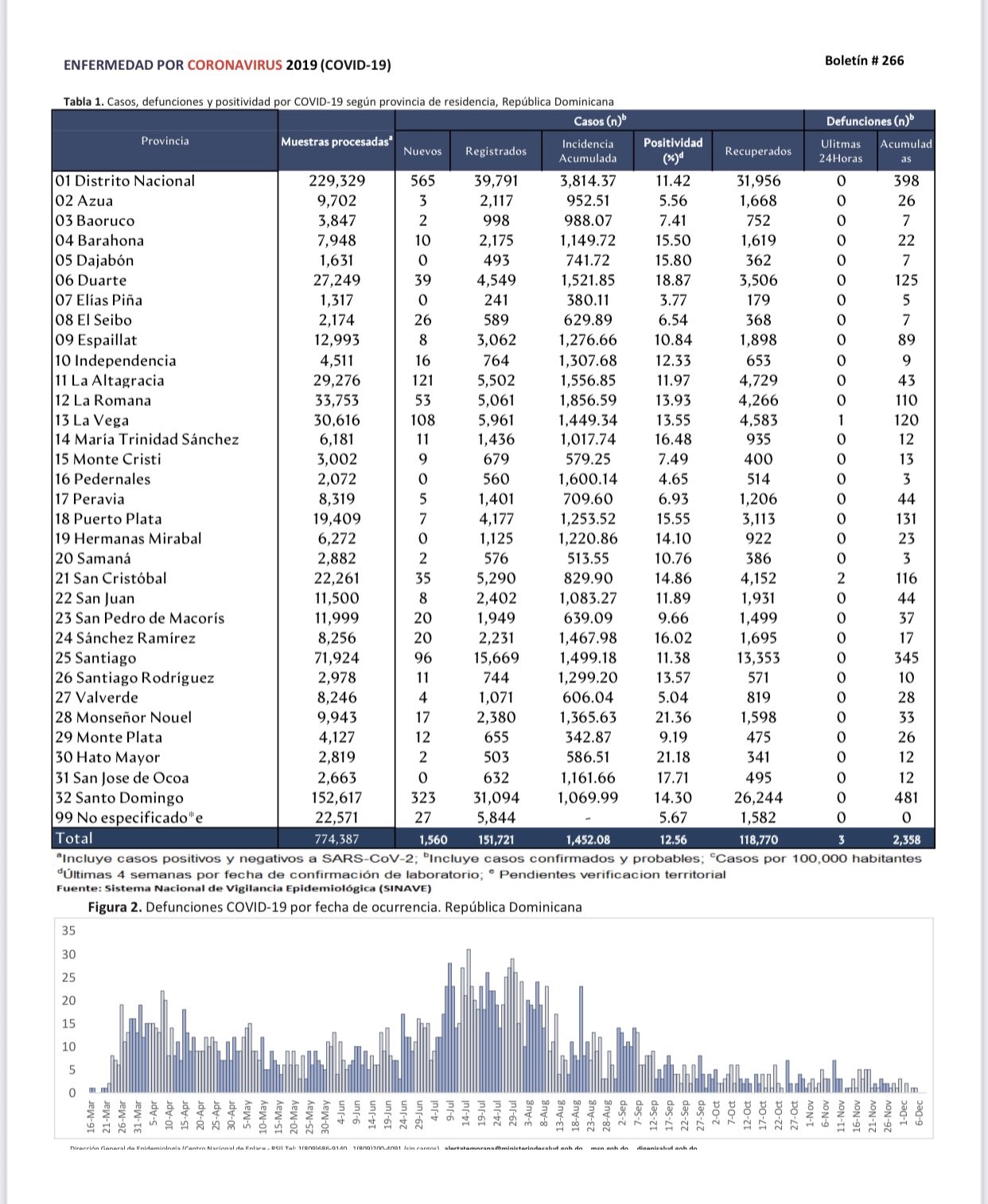 Salud Pública sostiene que las defunciones ascienden en total a 2,358 desde marzo, mientras los casos acumulados de Covid suman 151,721.
